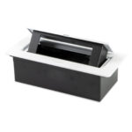 The new pop-up box is available in two color finishes: white (code 00458-B) and metallic silver (code 00458-A), and includes the technopolymer box to be fixed under the installation table/panel, to protect the connections.