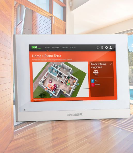 Nuovo controller 7″ touch screen Mimì per il sistema UNA Automation, coperchi per scatole da incasso a 3, 4, 7 moduli, viti per supporti da 50mm, scatole di superficie 4 moduli, graffette fissacavo color marrone, nuovi centralini da parete IP40 serie M036..