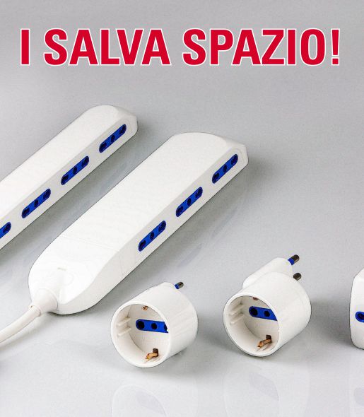 Adattatori e multiprese salvaspazio, adattatori con spina disassata, nuove plafoniere con schermo in tecnopolimero.
