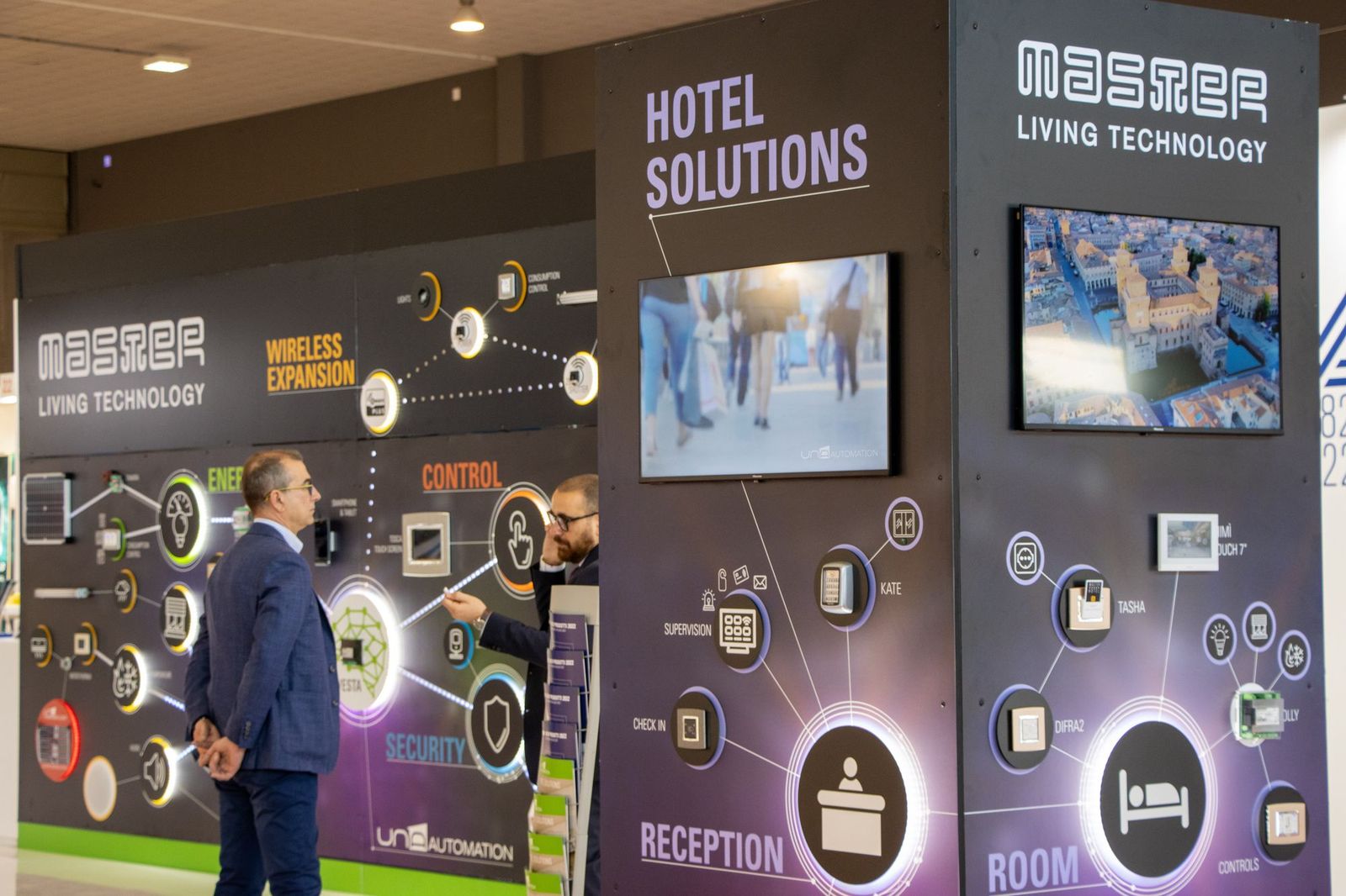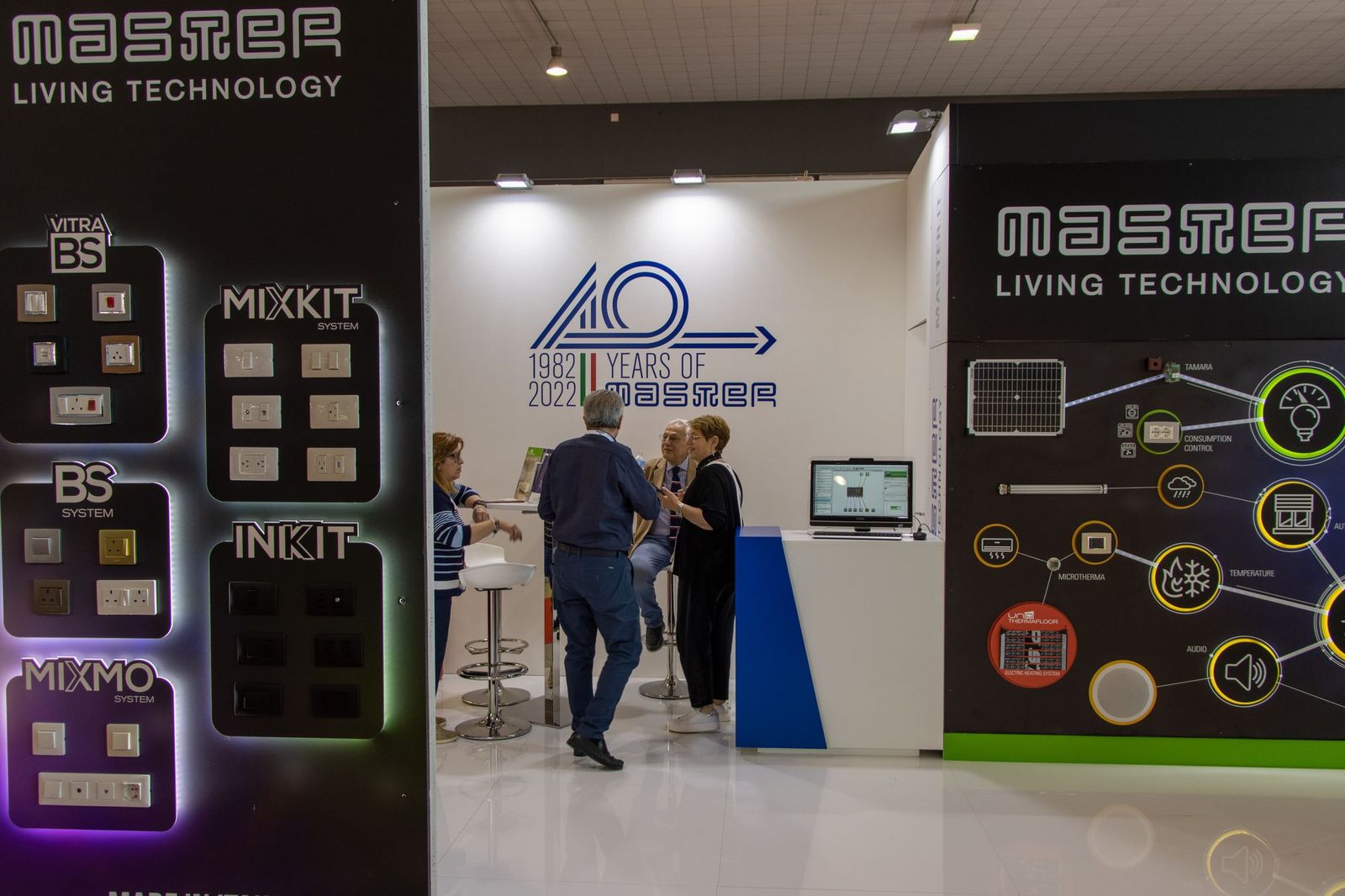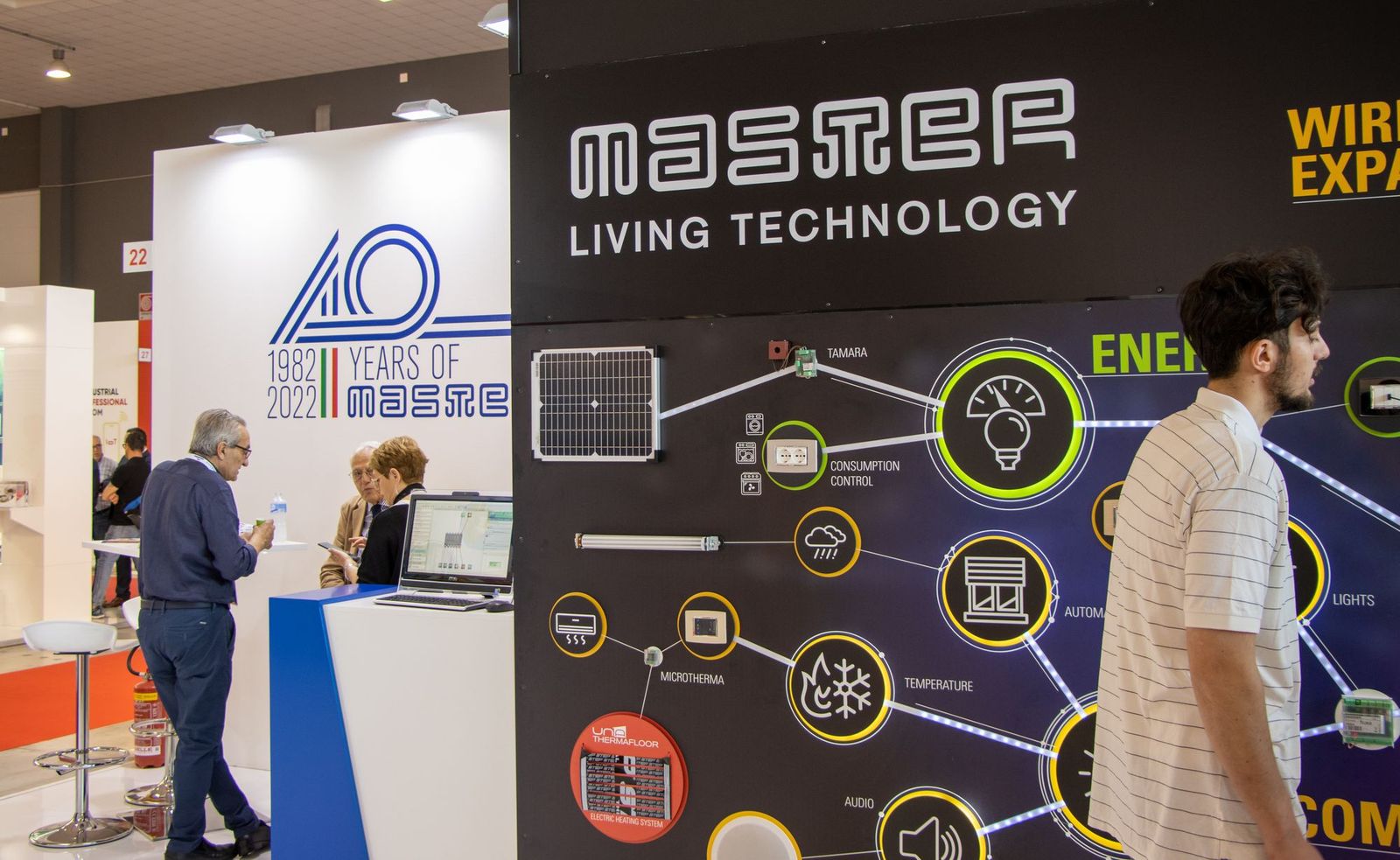 A l’occasion du 40e anniversaire de l’entreprise, Master expose les solutions consolidées qui ont contribué à l’extraordinaire croissance de la marque et les nouveautés de UNA Automation Domologica pour la domotique et la domotique.