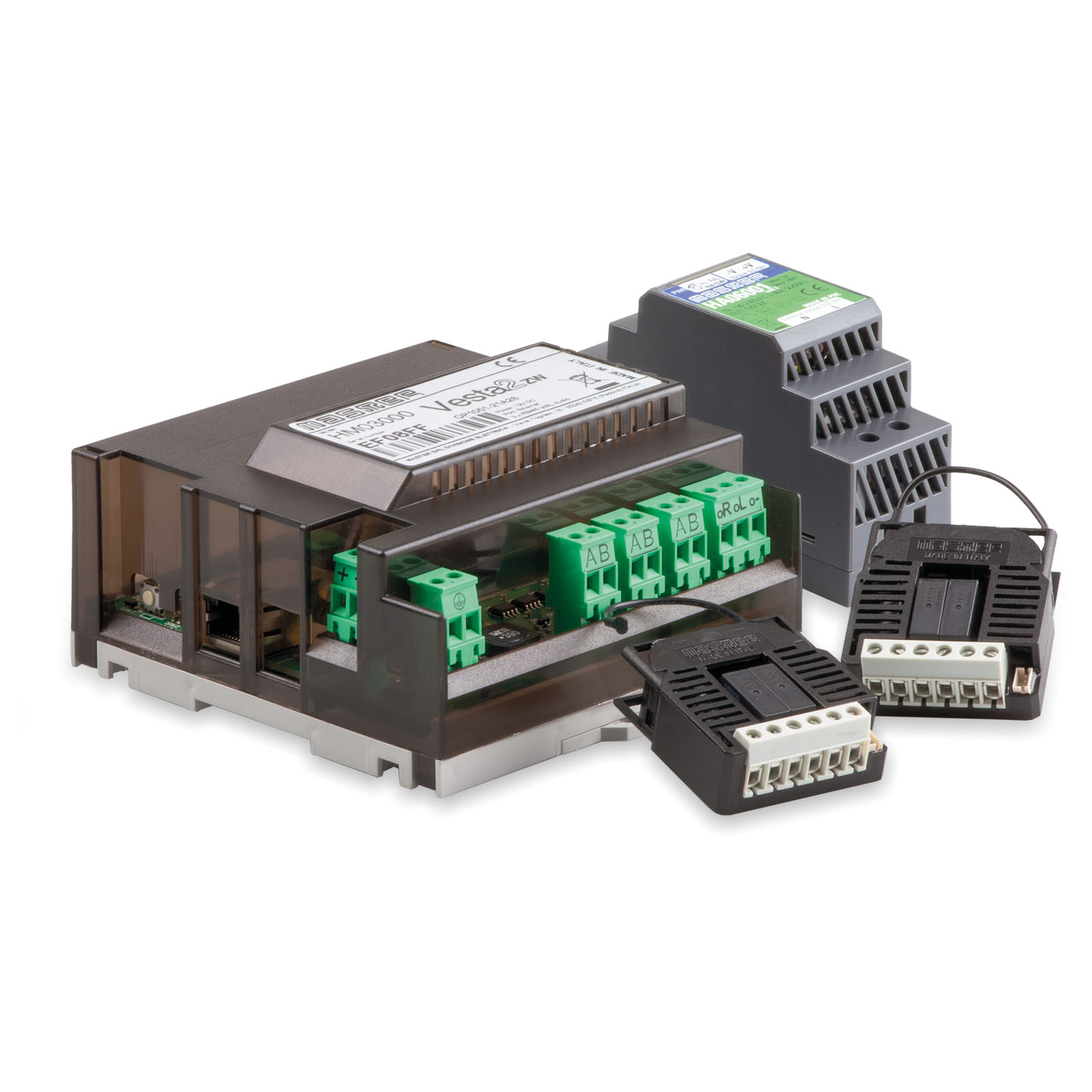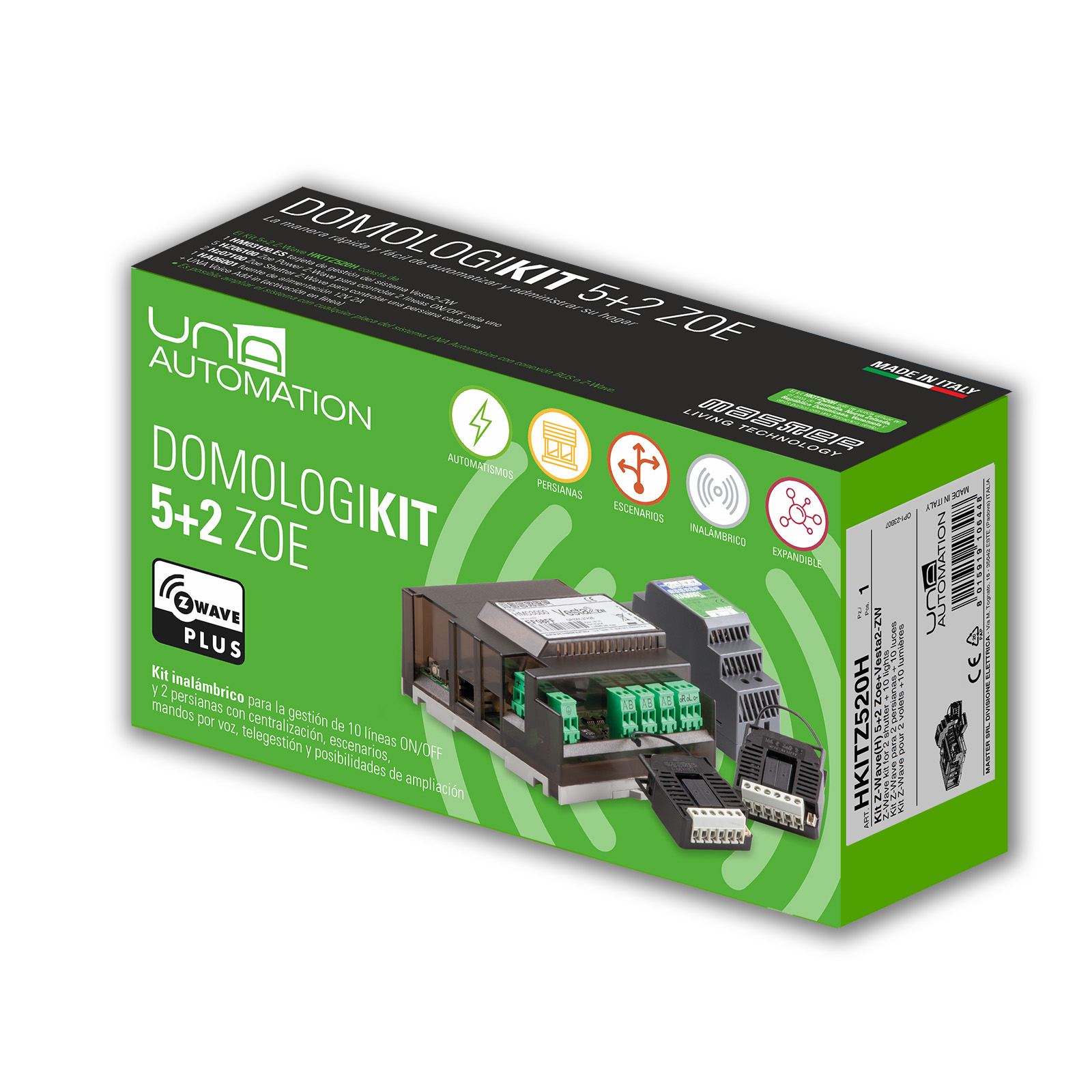 Les deux kits sont extensibles. Avec les cartes UNA supplémentaires, il est possible de connecter via bus ou sans fil (Z-Wave) d’autres interrupteurs, volets roulants ou lumières tamisées, gestion des charges, irrigation et thermorégulation.