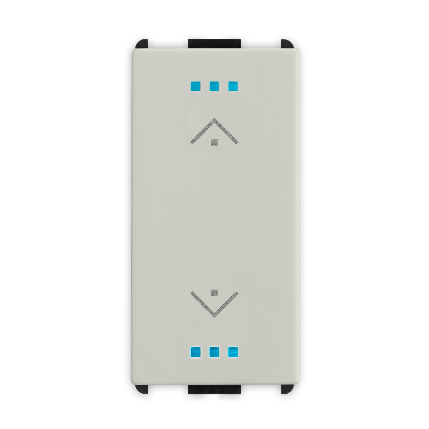 Pulsante doppio 230V per schede Z-Wave Zoe/Zula con retroilluminazione a LED blu (alimentati a 230V DC) con simbolo frecce per salita/discesa, 1 modulo PIXIA grigio LIGHT SAND